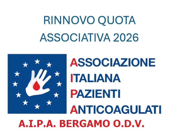 Ricordiamo che non occorre essere pazienti anticoagulati per diventare Soci AIPA: possono iscriversi come Soci simpatizzanti anche familiari e amici, usufruendo degli stessi servizi e partecipando a tutte le iniziative dell’Associazione.